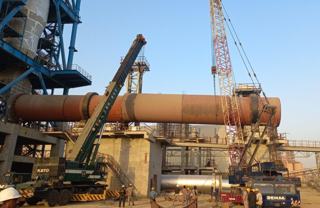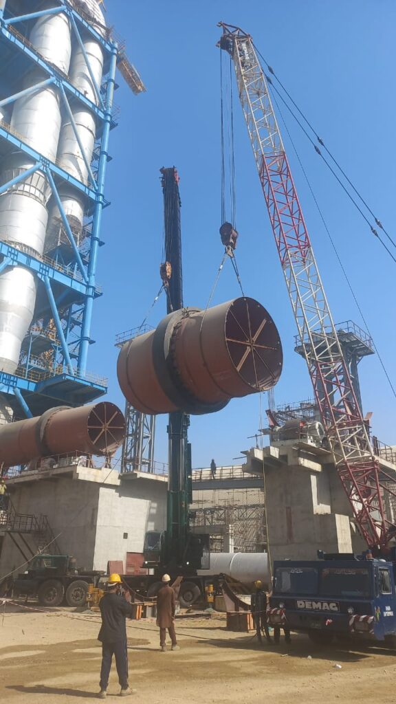 Lifting of Kiln with 190 ton and 160 ton crane at Attock Cement Factory.
